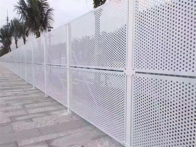 冲孔围挡可以适应各种顽劣景象,无论是严寒酷暑还是狂风暴雪不停都能保持色彩牢固。如若沾染灰尘等物,利用水管喷洗,就能使围挡重换光彩。并且是一种防火材料,达到难燃标准,可以或许或者或者有效延缓火势的蔓延,减少人身和财产安全。冲孔围挡装置方便、快捷、牢固。装置方便,可重复多次利用,不会损坏都邑情况,构成都邑残余。