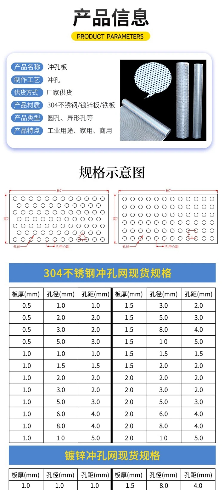冲孔板又名冲孔网、多孔板、穿孔板、矿筛网、机筛网等。顾名思义是指表面有各类形状孔型的金属板产品用途*应用于 化工...