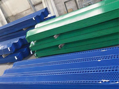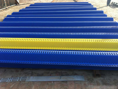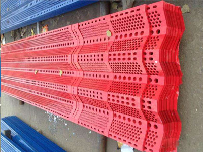 彩色防风抑尘网是利用空气动力学原理,按照实施现场环境风洞实验结果加工成一定几何形状、开孔率和不同孔形组合挡风抑尘墙,使流通的空气(强风)从外通过墙体时,在墙体内侧形成上、下干扰的气流以达到外侧强风,内侧弱风,外侧小风,内侧无风的效果,从而防止粉尘的飞扬。